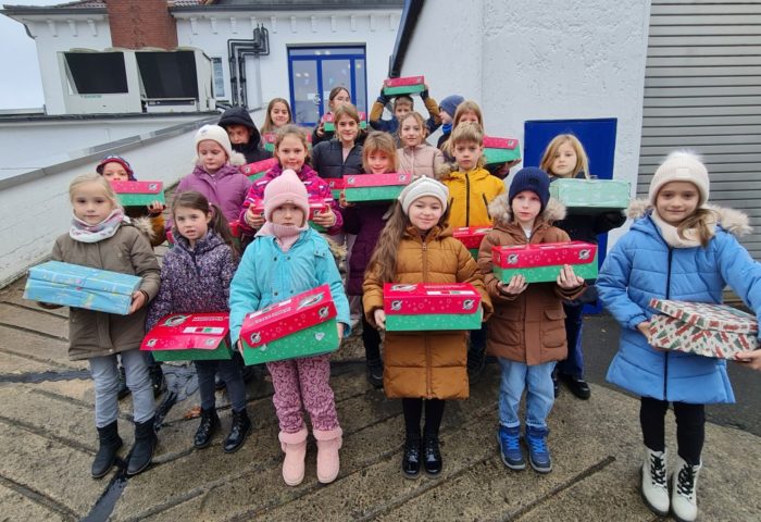 Herzlichen Dank für 25 Schuhkartons, die Kindern die Weihnachtsboschtaft bringen: „Jesus kam für dich als Retter in die Welt!“